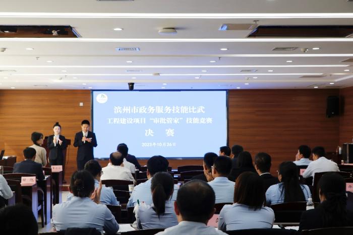滨州日报/滨州网讯 为深入开展学习贯彻习近平新时代中国特色社会主义思想主题教育,着眼提升全市“审批管家”服务专业化、精准化、规范化水平,10月26日,滨州市行政审批服务局联合市总工会、市委改革办、市营商环境建设服务中心、市民营经济服务发展中心开展“滨周到”政务服务技能大赛(工程建设项目“审批管家”)技能竞赛。经过各县市区分赛区初试筛选,来自全市的30名“审批管家”参加了比赛角逐,312名帮办代办工作人员通过线上线下观摩学习。