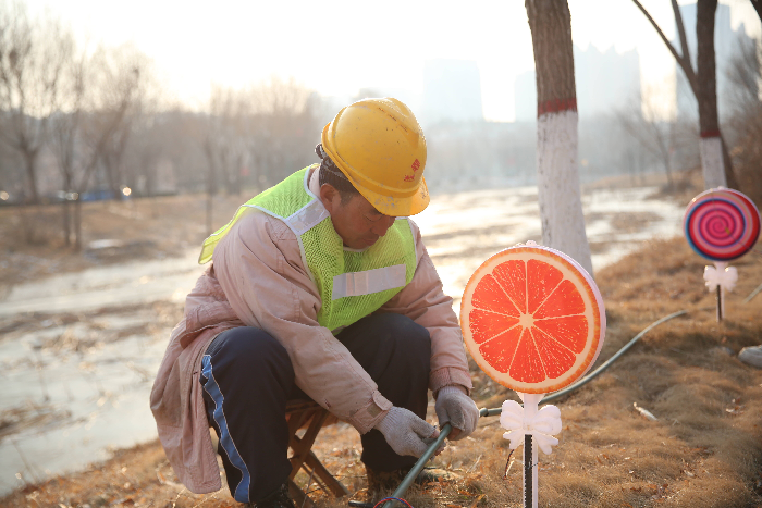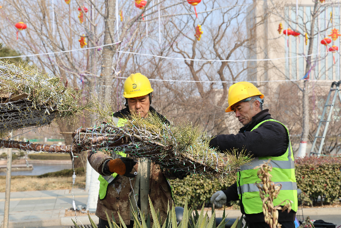 市城管局负责现场施工的技术人员表示,本次工程精心打造了30余处大型主题灯组,将我市独特的文化符号与城市发展足迹融入光影设计之中。其中,在设计与工艺层面,施工团队依据各类树木的形态,量身定制LED灯串布置方案,搭配悬挂中国结、红灯笼、福袋等寓意吉祥的节日灯饰,实现疏密有致、高低错落的视觉层次;在灯具选型上,严格恪守安全与环保标准,通过点、线、面有机结合的科学布光方式,精准凸显建筑的立体感与层次感,全面提升整体视觉体验;同时,工程对往年回收的灯饰材料进行全面清理、专业检测与循环再利用,让旧材料在新设计中重焕别样生机。