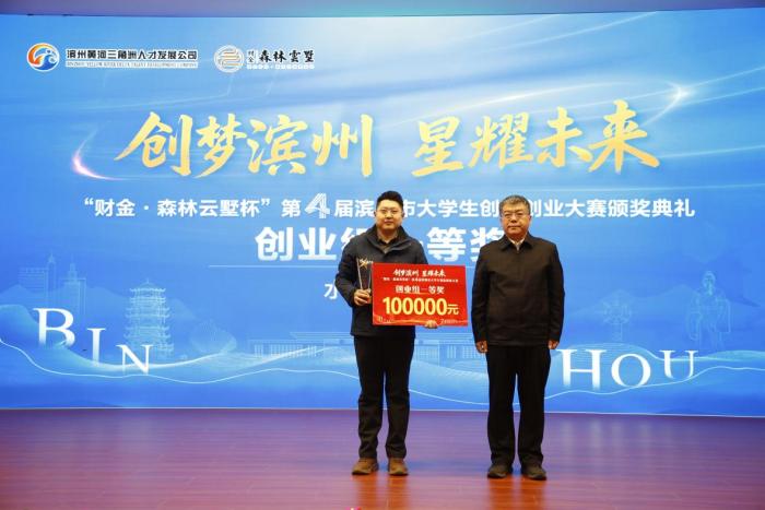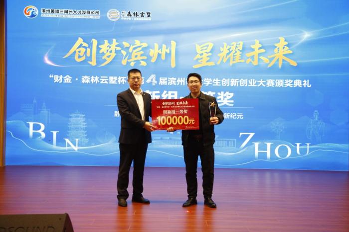 滨州日报/滨州网讯 2月11日,由市委组织部、市人力资源和社会保障局主办,市财金集团下属滨州黄河三角洲人才发展有限公司承办的“财金森林雲墅杯”第四届滨州市大学生创新创业大赛颁奖典礼成功举办。市人力资源和社会保障局党组书记、局长田洪刚,市财金发展集团党委副书记、副董事长、总经理李会涛及市委组织部、市人社局、省财金研究院、团市委、市妇联、市融资担保集团等部门、单位负责同志出席仪式并为获奖选手颁奖。