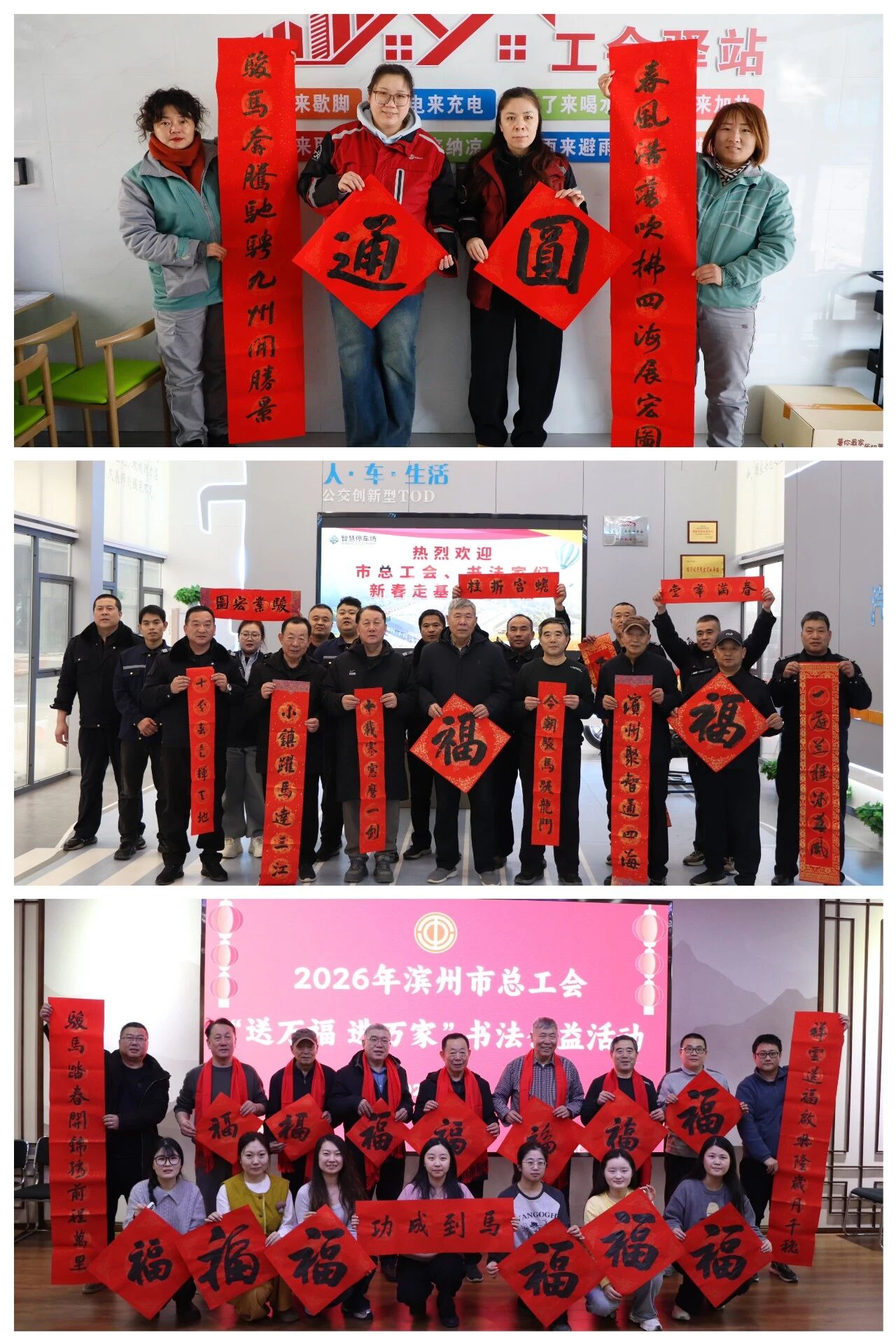 滨州日报/滨州网讯 为弘扬中华优秀传统文化,营造欢乐祥和的节日氛围,2月9日-11日,滨州市总工会先后走进企业、机关、工会驿站开展2026年“送万福 进万家”书法公益活动。