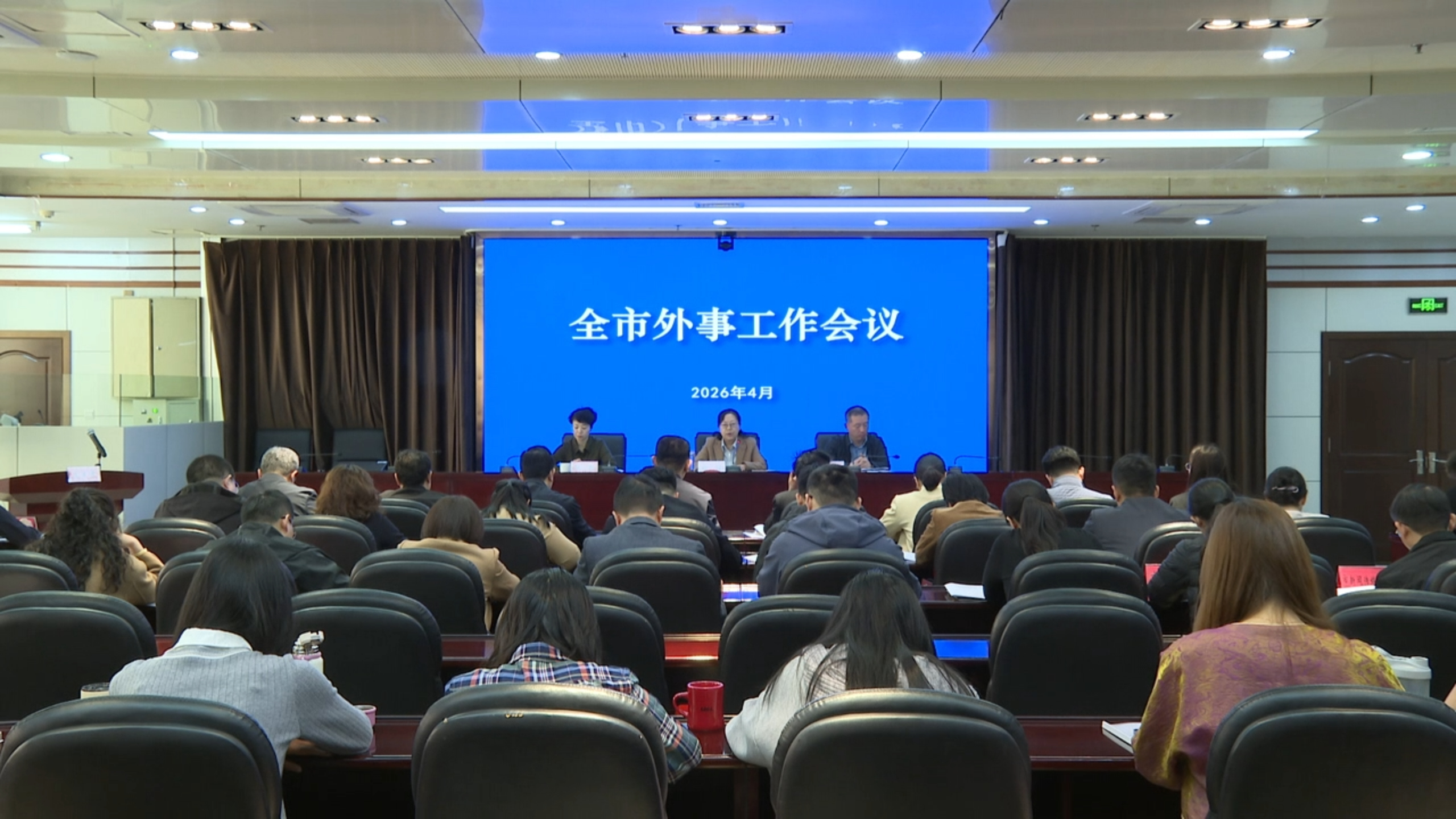 4月3日上午,全市外事工作会议召开。会议深入学习贯彻习近平外交思想,传达学习省委外事工作委员会全体会议、全省外事工作会议和市委外事工作委员会全体会议精神,总结工作,分析形势,部署任务,动员全市外事系统进一步统一思想、凝心聚力,真抓实干、创新突破,持续推动全市外事工作开创新局面。市外办党组书记、主任裴梅出席会议并讲话。