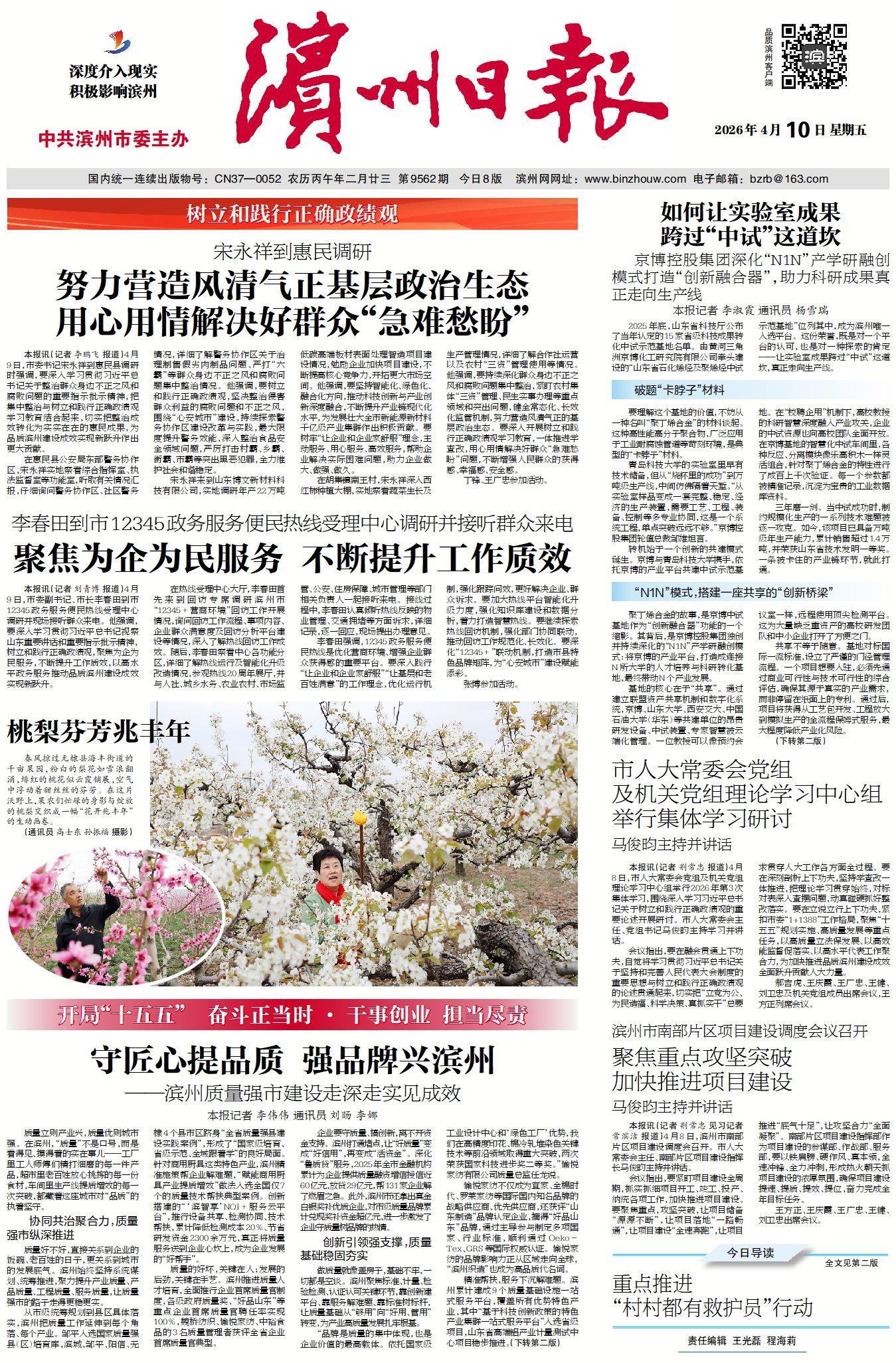 滨州日报/滨州网讯 4月9日,市委书记宋永祥到惠民县调研时强调,要深入学习贯彻习近平总书记关于整治群众身边不正之风和腐败问题的重要指示批示精神,把集中整治与树立和践行正确政绩观学习教育结合起来,切实把整治成效转化为实实在在的惠民成果,为品质滨州建设成效实现新跃升作出更大贡献。