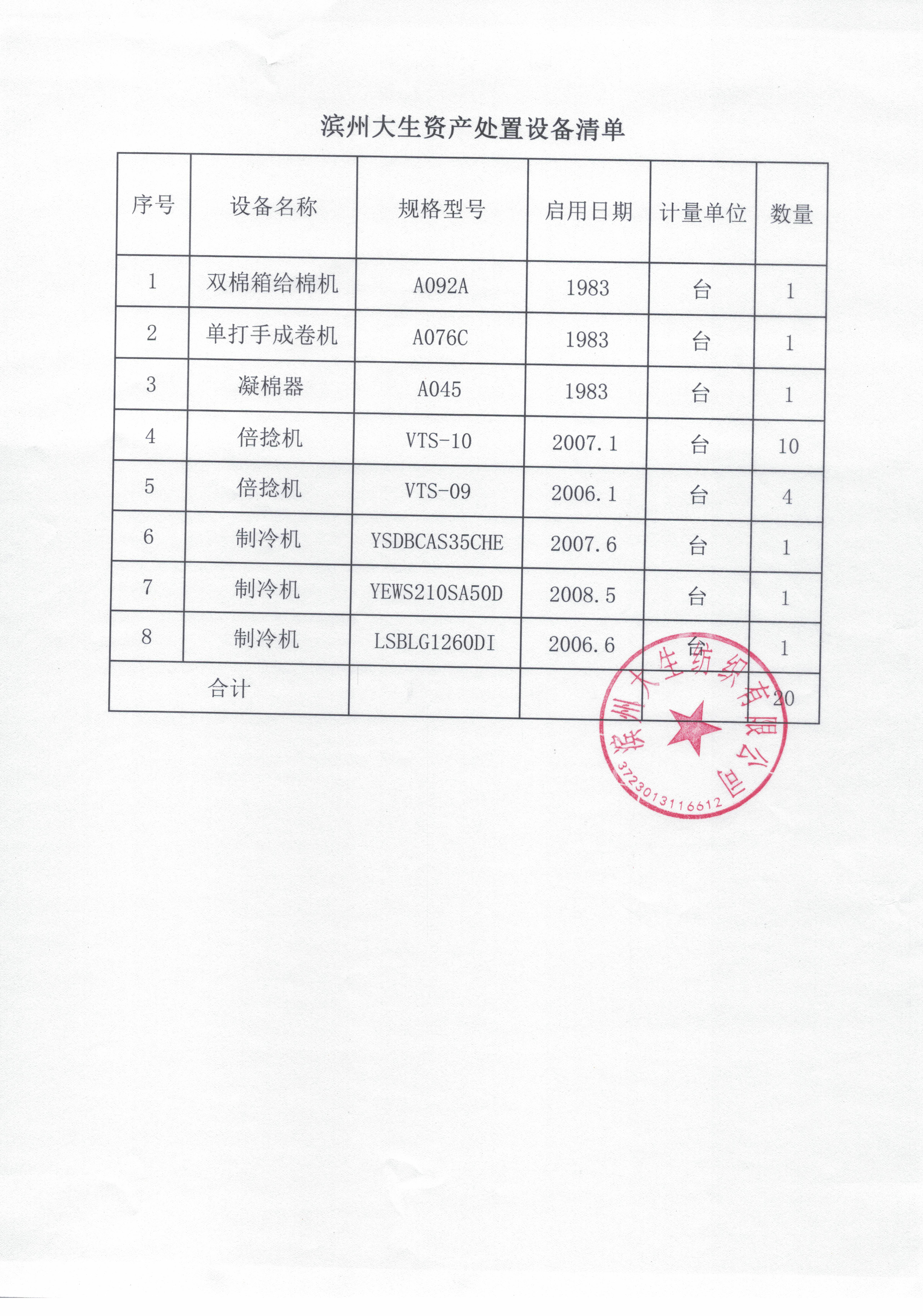 滨州大生2025年技改后旧设备(第一批)资产转让处置 |
