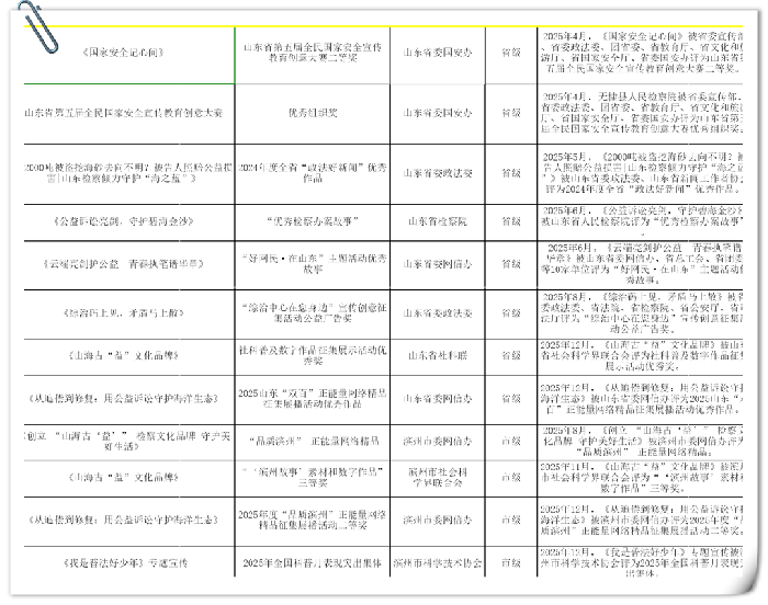 2025年以来,无棣县检察院新闻宣传工作以机制创新破解宣传瓶颈,用特色载体拓宽传播边界,推动新闻宣传文化工作从 “量的积累” 迈向 “质的飞跃”,累计荣获省级荣誉 8 项、市级荣誉 4 项、县级荣誉 3 项,新媒体平台连续四年获评 “无棣县十佳优秀政务新媒体”。