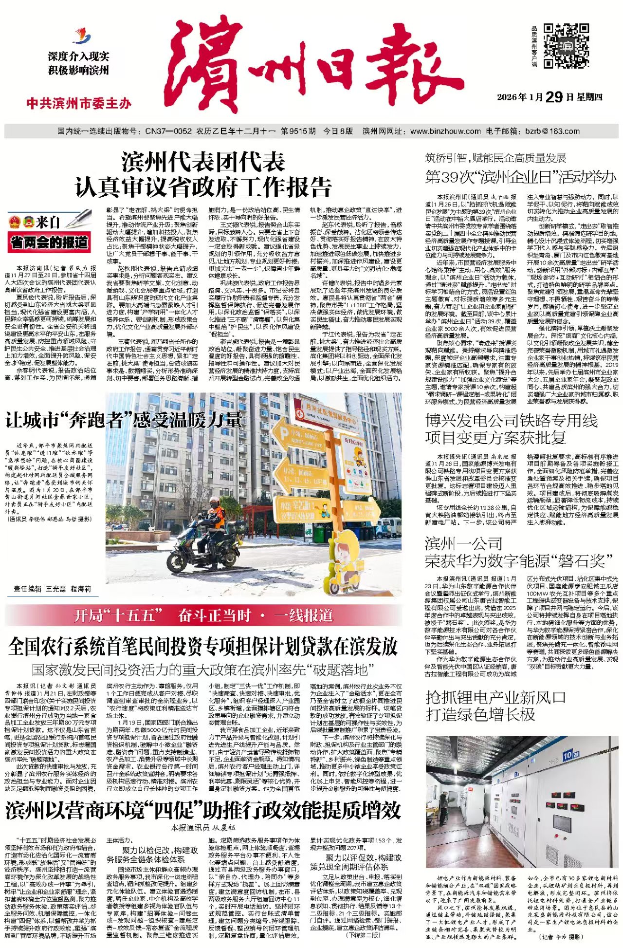 滨州日报/滨州网讯 “十五五”时期经济社会发展必须坚持有效市场和有为政府相结合,打造市场化法治化国际化一流营商环境,形成既“放得活”又“管得好”的经济秩序。滨州坚持把打造一流营商环境作为深化改革发展的战略性工程,以“高效办成一件事”为牵引,树牢“让企业和企业家舒服”理念,紧扣营商环境全方位监督监测,聚力推动政务服务体验、政策落实评估、涉企服务问效、机制保障管控,一体化构建“四促”体系,以督帮改并举为抓手持续提升政府行政效能,塑强“滨周到”营商环境品牌,不断提升市场主体活力。