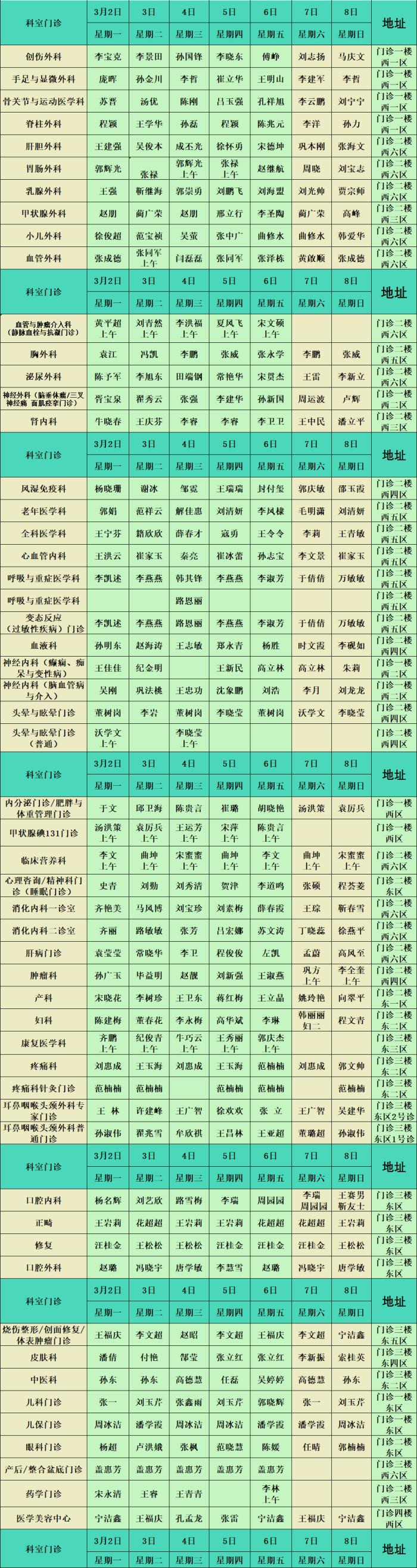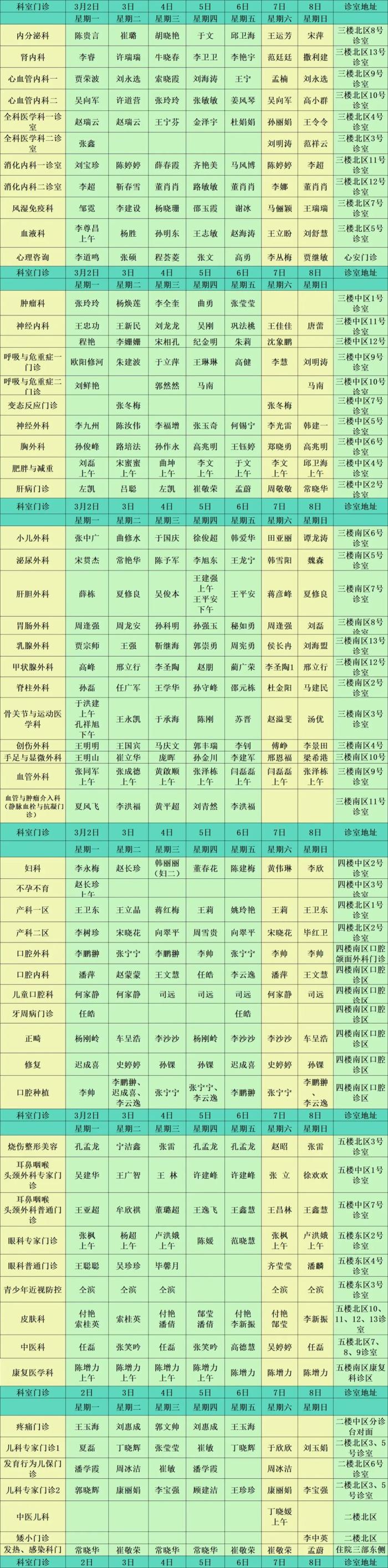 东院区门诊医师值班表