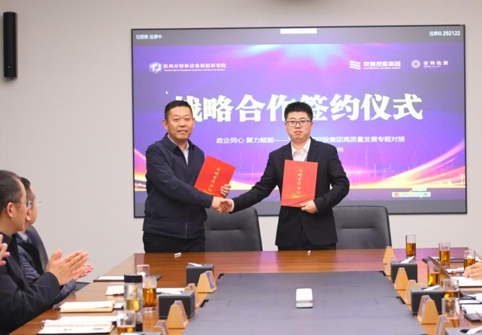 滨州市特种设备检验研究院与京博集团山东安特检测有限公司负责人共同签署《特种设备检验合作框架协议》,为双方深化特种设备检验领域合作筑牢制度根基。