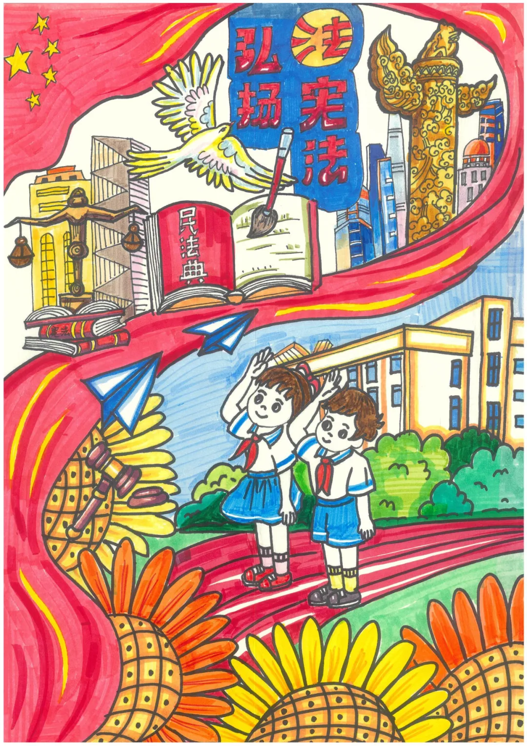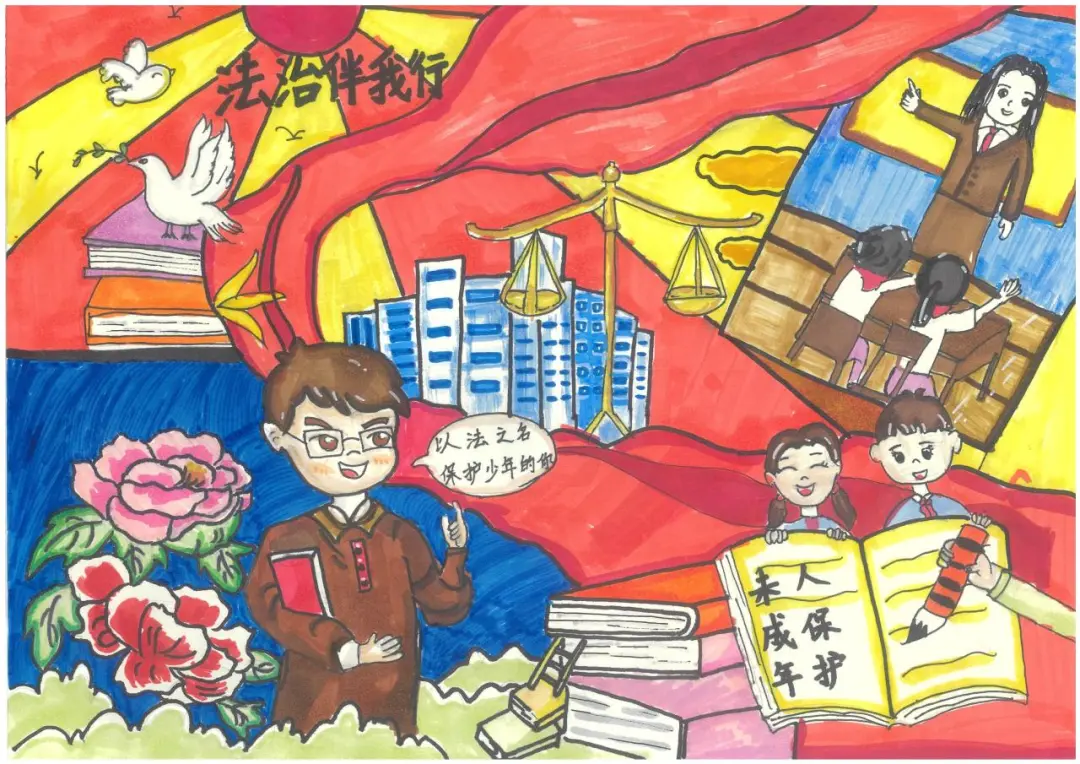 为深入学习贯彻习近平法治思想,全面落实 “八五” 普法规划,结合正在开展的第四个“民法典宣传月”,市普法办、团市委、市教育局、滨城区司法局共同开展了青少年法治绘画征集活动,旨在提高广大青少年学生的法治素养,引导青少年学生在心中种下 “法治梦”,通过“小手拉大手” 有效促进全市公民法治素养提升。现将优秀绘画作品进行展播。