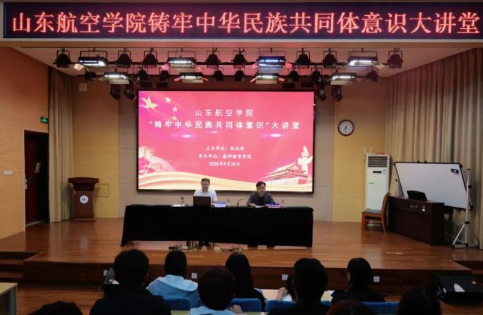 在2025年山东省民族团结进步宣传月期间,山东航空学院紧扣铸牢中华民族共同体意识主线,依托“铸魂・启航”民族融合大思政课项目,聚焦教师素养提升、学生思想引领、师生互动交融三大维度,精心举办新进教师统战与民族宗教政策培训、铸牢中华民族共同体意识大讲堂、各民族学生代表座谈会三大特色活动,以大思政课“教、学、践”一体化设计,让民族团结的种子在校园深深扎根,为建设航空特色鲜明的高水平应用型大学凝聚起同心奋进的力量。