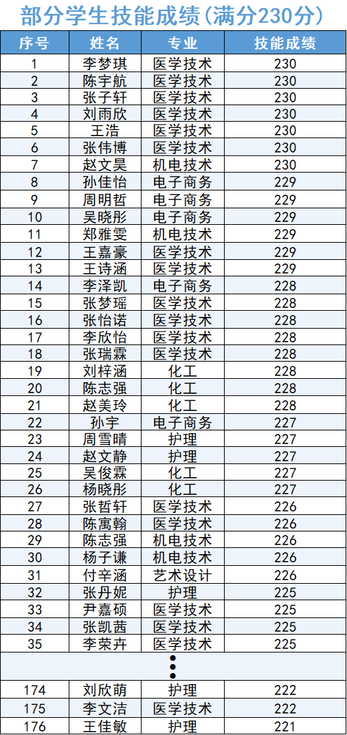 2025年,医学技术与护理专业学生技能考试取得亮眼成绩,医技专业平均分达215.5分,其中6位学子喜获230分满分成绩,200分以上人数达到83%;护理专业平均分达到208.6分,200分以上人数达到80.8%,专业技能成绩位居全省前列。