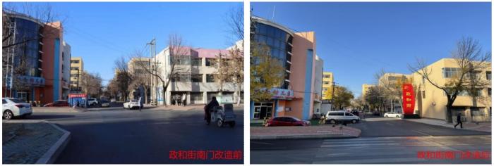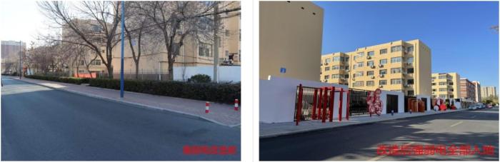 针对政和社区原有规划滞后、建筑风貌不协调、道路狭窄拥堵、人车混行等痛点,滨城区精准施策整合空间资源,全面提升居民生活便利度。一是推动风貌提升与街区复兴。在尊重原有建筑格局的基础上,对楼栋外立面及公共楼梯间内墙进行统一粉刷,累计改造面积达7.4万平方米,显著改善视觉观感;为沿街商铺定制一体化门头牌匾,融入文化元素,唤醒传统街区的商业活力。二是推进“破墙统管”与功能优化。对相邻小区实施“破墙统管”,在保留街巷肌理的前提下拆除闲置院墙,腾出空间用于建设带状绿地、景观小品、停车位及新能源充电设施等。将社区入口、主次干道、关键节点与沿街商铺、派出所、学校等公共服务场所串联,构建起连续、多元、开放的公共空间体系。三是实施交通优化与道路提升。将政和街主路东西两侧各拓宽2米,实行人车分流,铺设非机动车道2600平方米,优化路侧停车,新增3处共23个新能源充电桩,有效缓解“停车难、出行堵”问题。