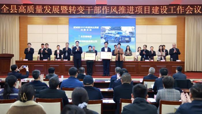 2月26日上午,在武城县高质量发展暨转变干部作风推进项目建设工作会议上,古贝春集团凭借在2025年度的卓越表现和对县域经济的突出贡献,被授予“武城县2025年度突出贡献功勋企业”殊荣。古贝春集团党委书记、董事长徐秀菊作为重点企业代表作典型发言。