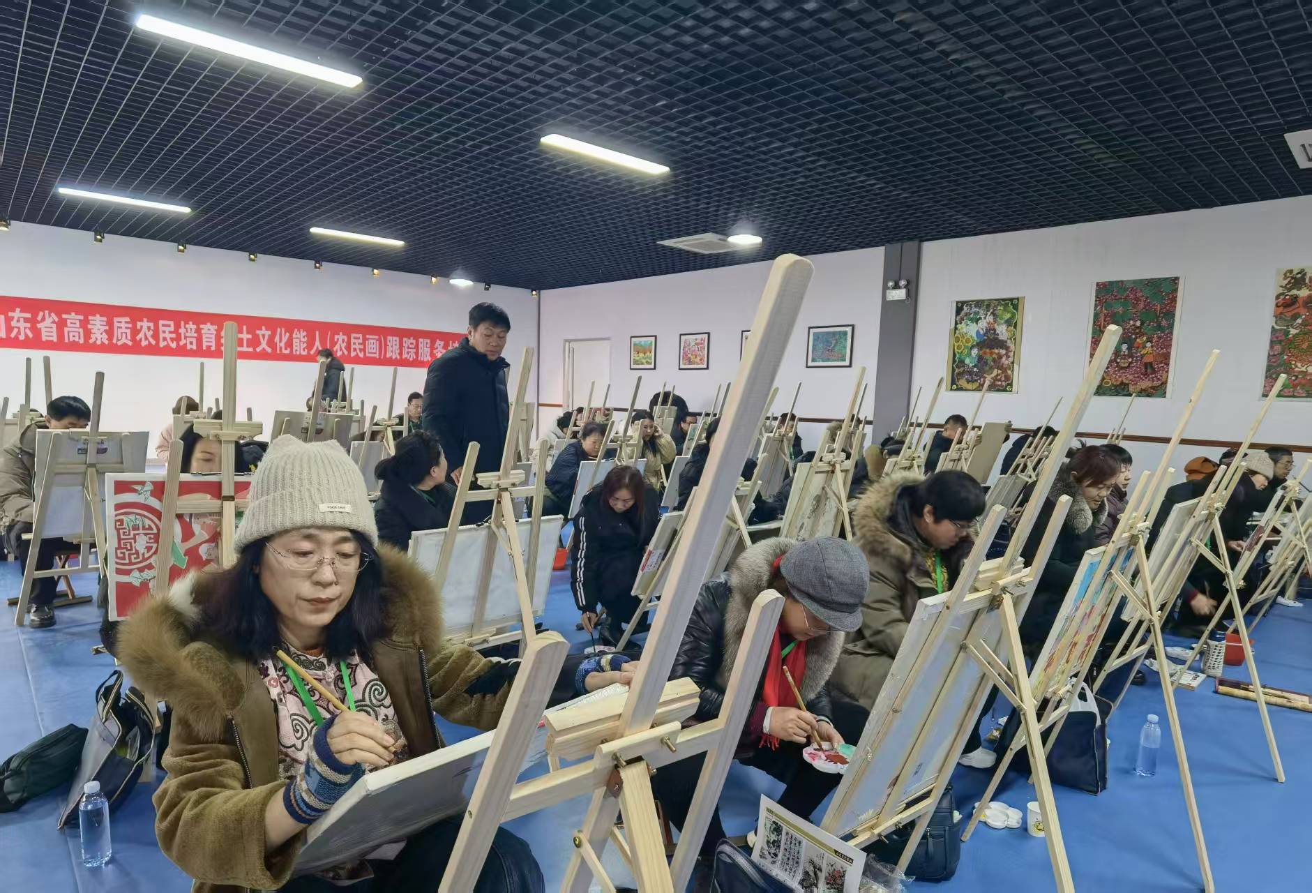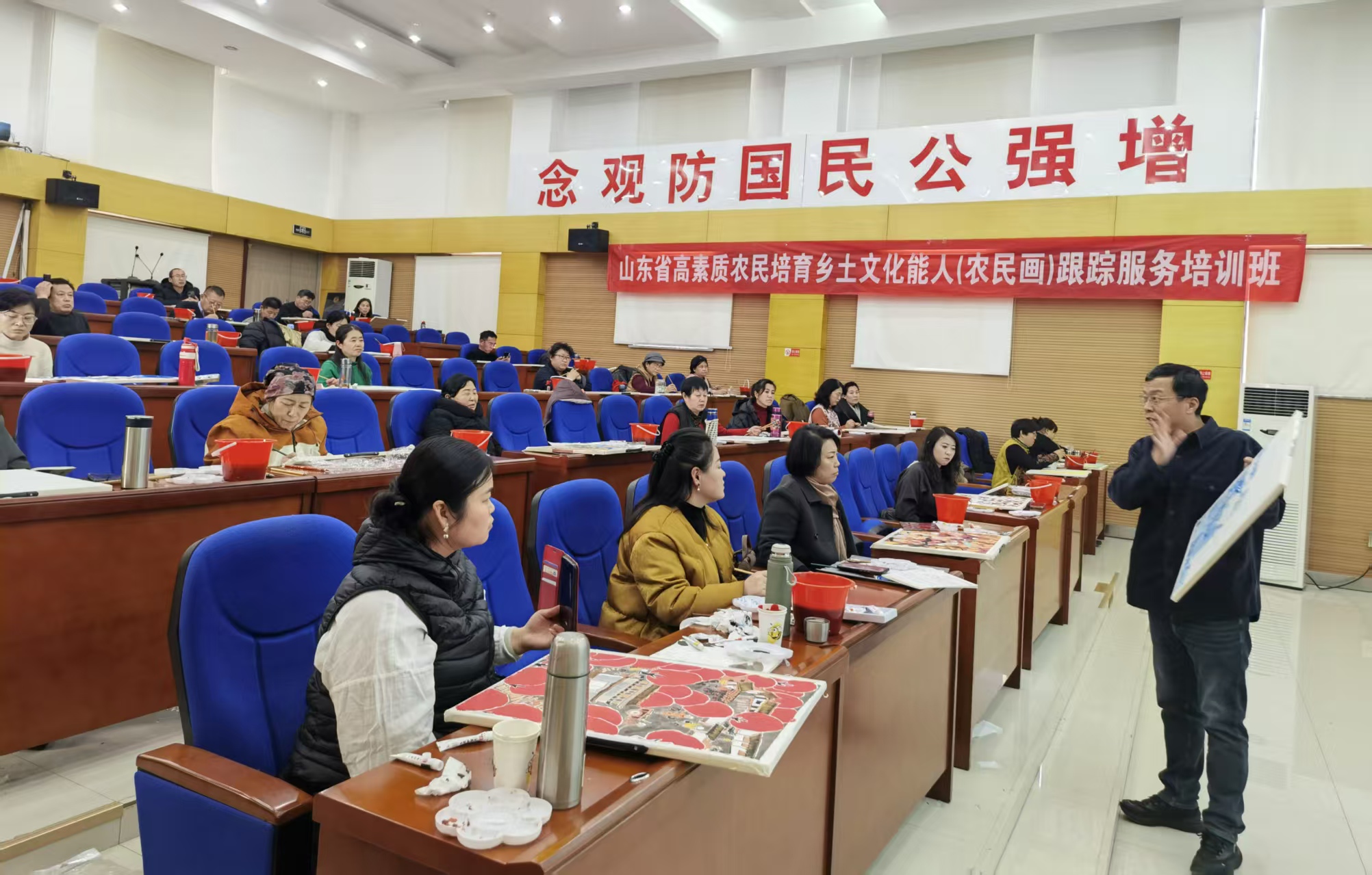2月5日,山东省高素质农民培育乡土文化能人(农民画)跟踪服务培训班在滨州市四环五海培训基地正式开班,来自全省各市县的43名农民画学员齐聚一堂,通过专业授课、实操实训、交流观摩等多元形式,提升创作水平,传承黄河农耕文脉,为乡村振兴注入文化动能。