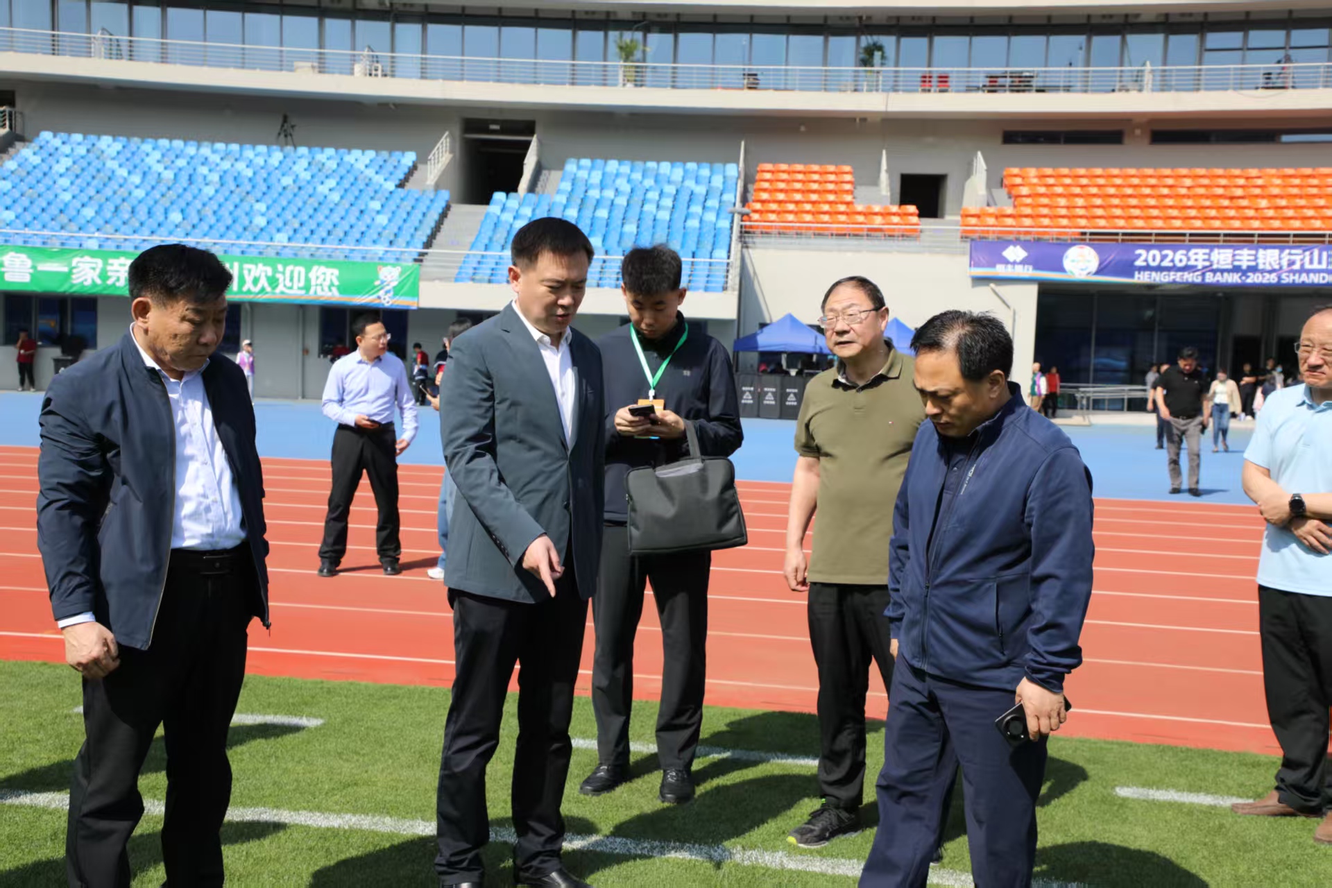 在滨州市全民健康文化中心体育场,屈跃宽一行先后来到比赛安检区、闸机口、观赛看台、球场及球员休息室,现场查看人员流线、设施配备、草坪维护及现场服务情况,并认真听取安保力量部署、票务销售、氛围营造等方面的工作汇报。