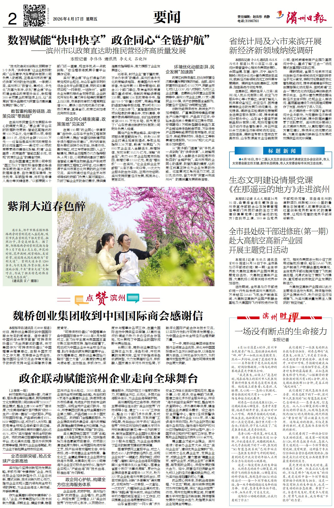 从“跑多部门盖章”到“手机点一点到账”的“快申快享”,从破解用地难题、注入金融活水到拓宽市场版图的“全链护航”,滨州市用政企同心的温度、数智改革的精度,让政策红利真正转化为企业发展的动能。这座黄河三角洲活力之城,正以扎实行动,奋力书写“民营兴则滨州兴” 的高质量发展崭新答卷。