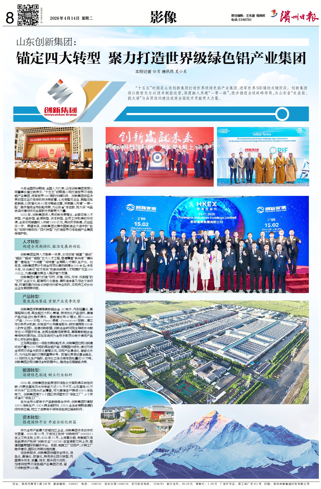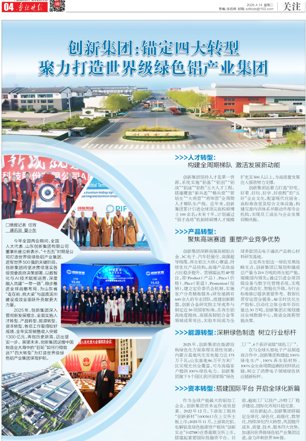 滨州日报/滨州网讯 “十五五”时期是山东创新集团打造世界级绿色铝产业集团、进军世界500强的关键阶段。创新集团将以数智化与AI技术赋能运营,深度融入共建“一带一路”,稳步推进全球战略布局,为山东省“走在前、挑大梁”与品质滨州建设成效全面跃升贡献更大力量。