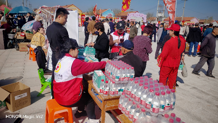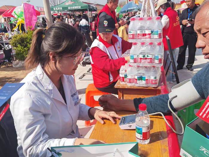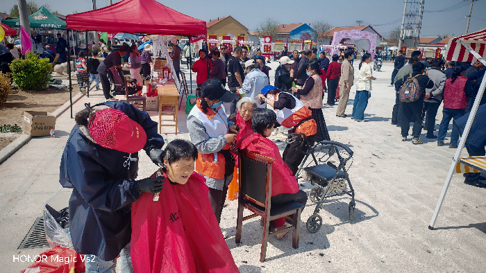 桃花盛放春意浓,银龄志愿暖人心。活动现场,各类便民志愿服务有序开展,处处洋溢着温情。东营银行与滨州商派志愿者为往来市民、游客免费发放遮阳帽和矿泉水,解决出行防晒、饮水难题;“五老”志愿者联合北门理发志愿者组建10人义剪团队,为百余名群众免费理发,面对村民的付费答谢与就餐邀约,志愿者们悉数婉拒,以专业服务践行公益初心。老干部红十字志愿服务队、恒美口腔门诊医护人员则免费为群众测血压、血糖,检查口腔健康,发放口腔护理礼包,同时提供现场应急救援服务,全方位守护群众健康与出行安全。