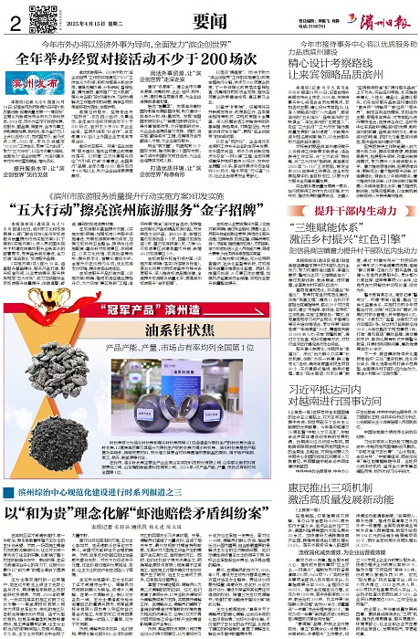 滨州日报/滨州网滨州讯 近日,滨州市文化和旅游局等15部门联合印发《滨州市旅游服务质量提升行动实施方案》(以下简称《实施方案》),深入贯彻国务院关于构建优质高效服务业新体系的部署要求,聚焦品质滨州建设,全力打造“滨滨有礼”旅游服务品牌。