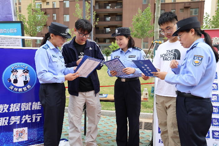 政策宣讲区内,各部门业务骨干化身“政策讲解员”,摒弃“文件语”、改用“家常话”,面对面为居民解读民生热点政策。市发展改革委详解低速无人驾驶装备道路测试管理办法与“信用滨州”建设政策;市公安局手把手指导居民使用滨州微警务办理无犯罪记录证明、微信挪车等高频事项,同步开展反诈宣传;市自然资源规划局普及湿地与野生动物保护法律法规;市卫生健康委科普无偿献血知识与权益政策;市外办宣传“滨企创世界”行动及领事保护条例;市城管局围绕生活垃圾分类、文明养犬解读条例。整齐摆放的宣传展板、通俗易懂的册页明白纸,让政策要点一目了然,志愿者全程引导居民咨询观看,让惠民政策“装进口袋、记在心里”。