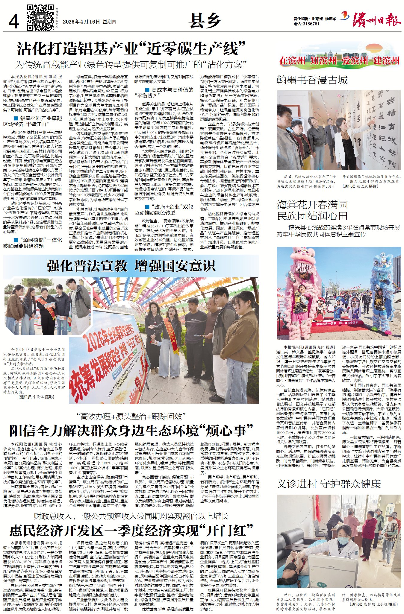 滨州日报/滨州网惠民讯 今年前3个月,惠民经济开发区完成财政总收入5.3亿元、一般公共预算收入2.6亿元,分别较去年同期增长168%、152%,两项核心指标均实现翻倍以上增长,以一季度“开门红”的强劲势头为全年经济高质量发展筑牢根基,彰显出区域经济发展的强劲韧性与蓬勃活力。