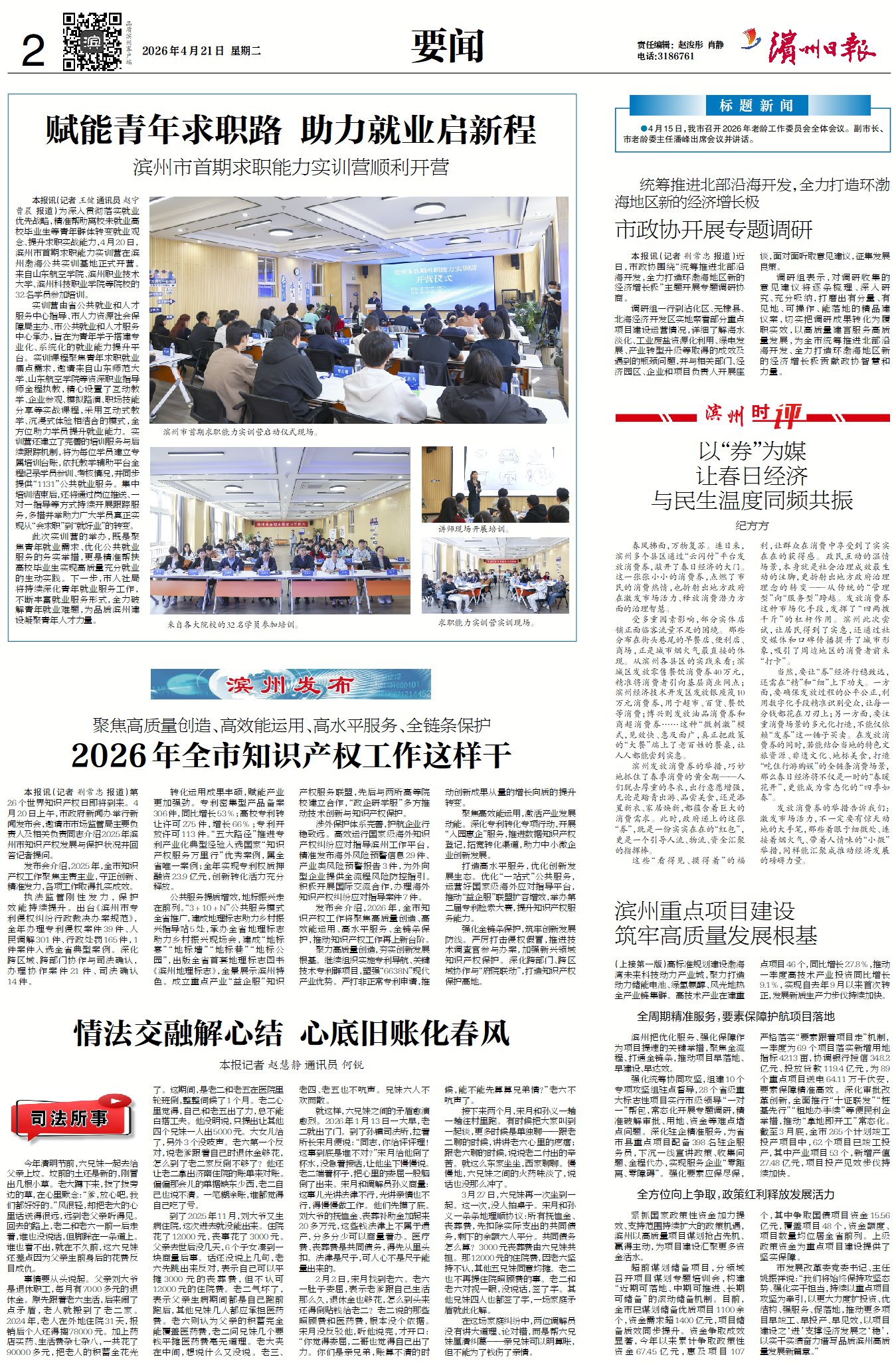 滨州日报/滨州网讯 为深入贯彻落实就业优先战略,精准帮助离校未就业高校毕业生等青年群体转变就业观念、提升求职实战能力,4月20日,滨州市首期求职能力实训营在滨州渤海公共实训基地正式开营。来自山东航空学院、滨州职业技术大学、滨州科技职业学院等院校的32名学员参加培训。