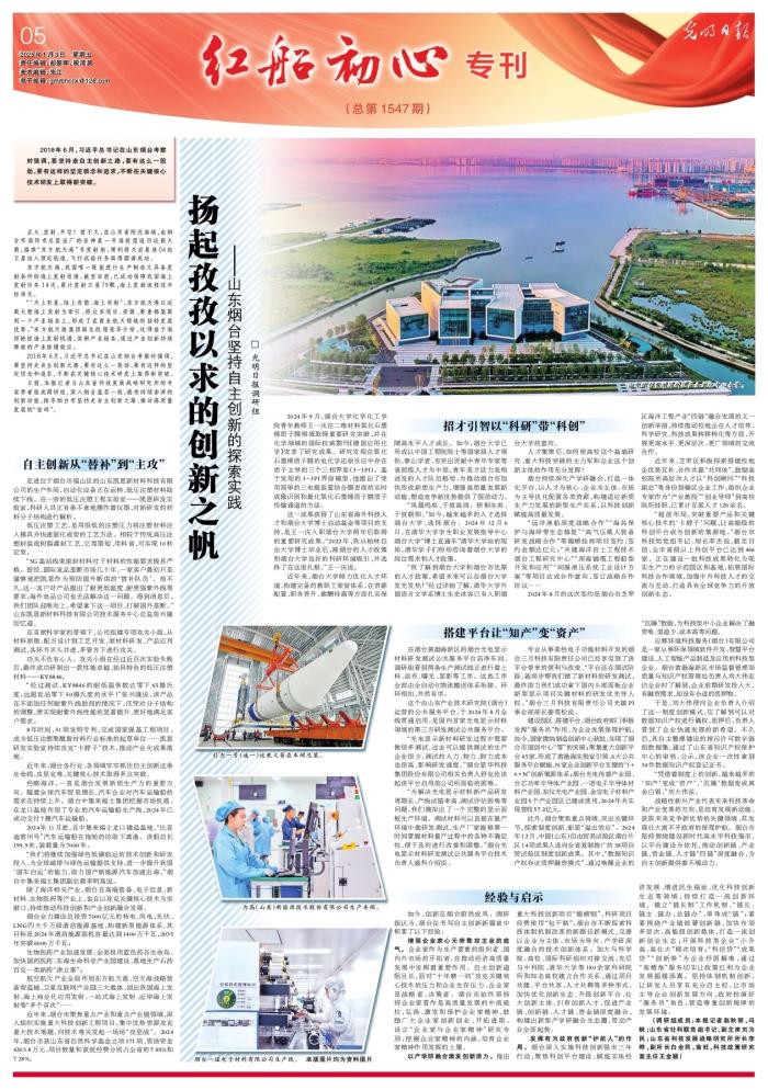 日前,本报记者与山东省科技发展战略研究所的专家学者组成调研组,深入烟台基层一线,感受持续澎湃的创新动能,探寻烟台市坚持走自主创新之路、推动高质量发展的“密码”。
