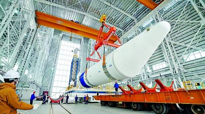 引力一号(遥一)运载火箭在车间总装。资料图片