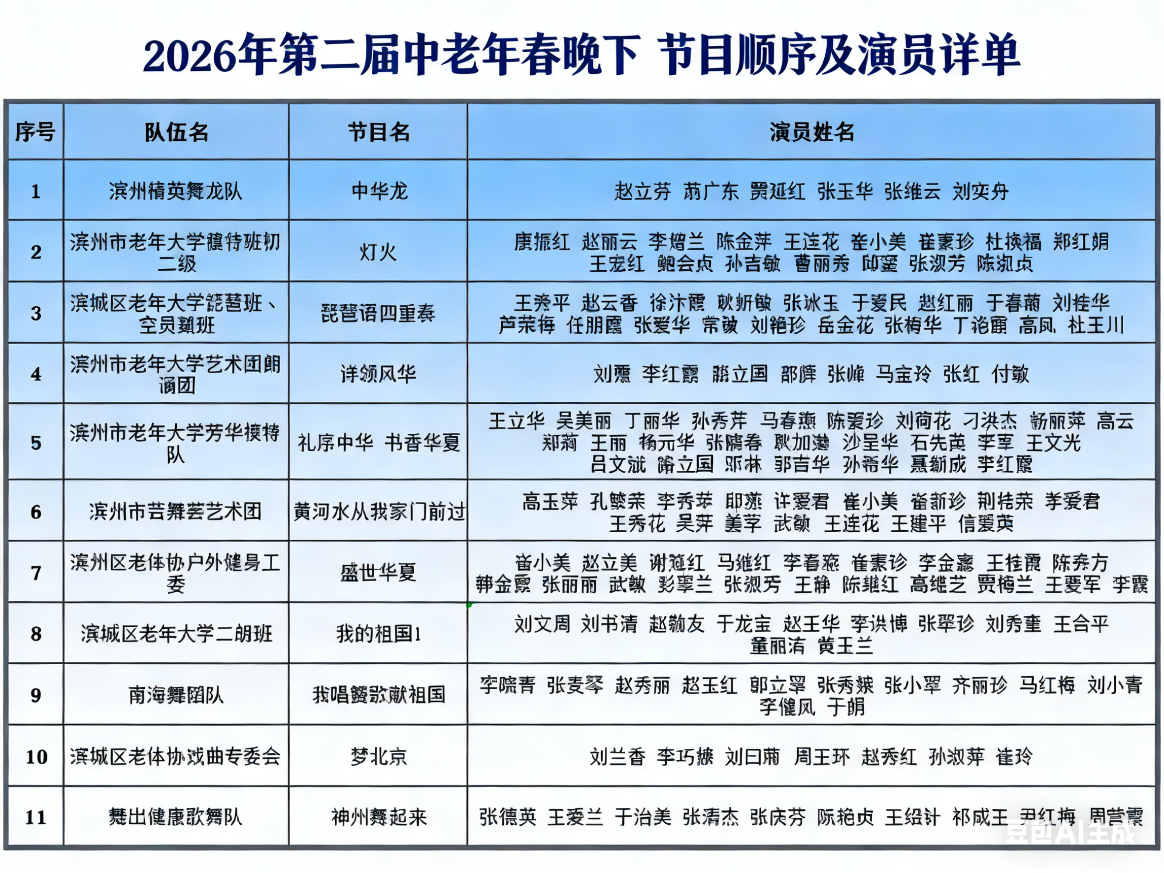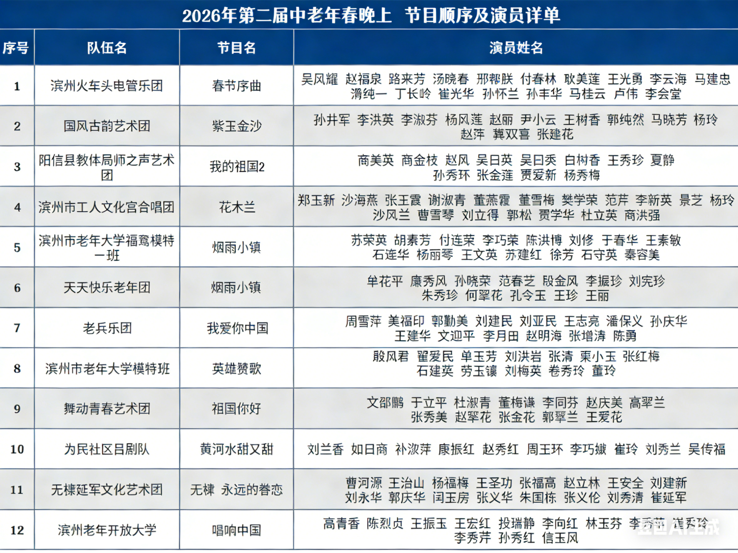 一场中老年春晚,不仅是一场文艺演出,更是滨州文化惠民政策落地生根的生动体现,也是银发力量赋能文化事业发展的有益探索。舞台上,中老年朋友们用嘹亮的歌声、灵动的舞步、真挚的情怀,歌颂更高水平富强滨州建设的新变化,抒发对祖国的热爱、对生活的热爱;荧屏之外,这场晚会将成为凝聚亲情、传递温暖的纽带,让新春的喜庆氛围更加浓厚,让“在滨州、知滨州、爱滨州、建滨州”的情怀深入人心。