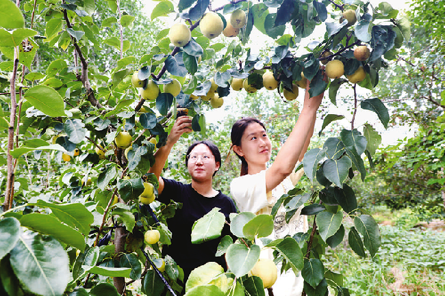 滨州日报/滨州网沾化讯 8月27日,游客在沾化区滨海镇郭赞家庭农场采摘香甜可口的香梨。“这梨饱满多汁,甜得像蜜,脆得咬一口都能听见咔嚓的声音。”游客张女士笑着说。