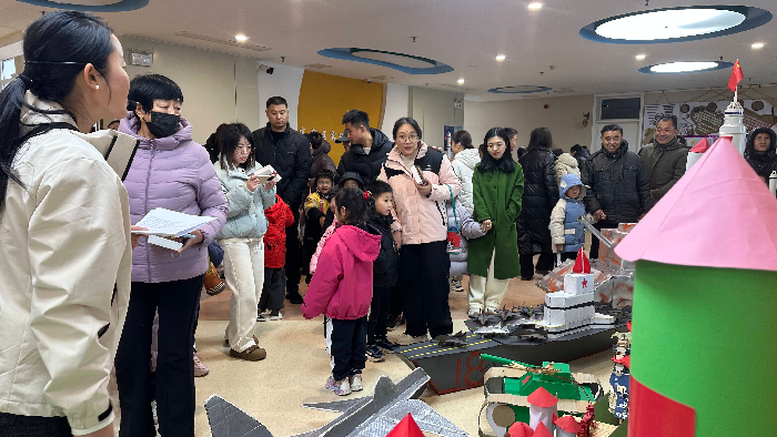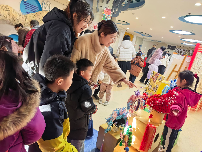 展览现场,欢声笑语不绝于耳。家长们纷纷在作品前驻足欣赏,凑近细看时还不忘互相点评学习,时不时交流着创作的巧思与心得。一旁的孩子们更是神采飞扬,骄傲地展示着与父母共同完成的作品,眉眼间满是藏不住的自豪与喜悦。这种亲密互动,让元旦的喜庆超越了节日本身,升华为一次深刻的情感共鸣与教育实践。