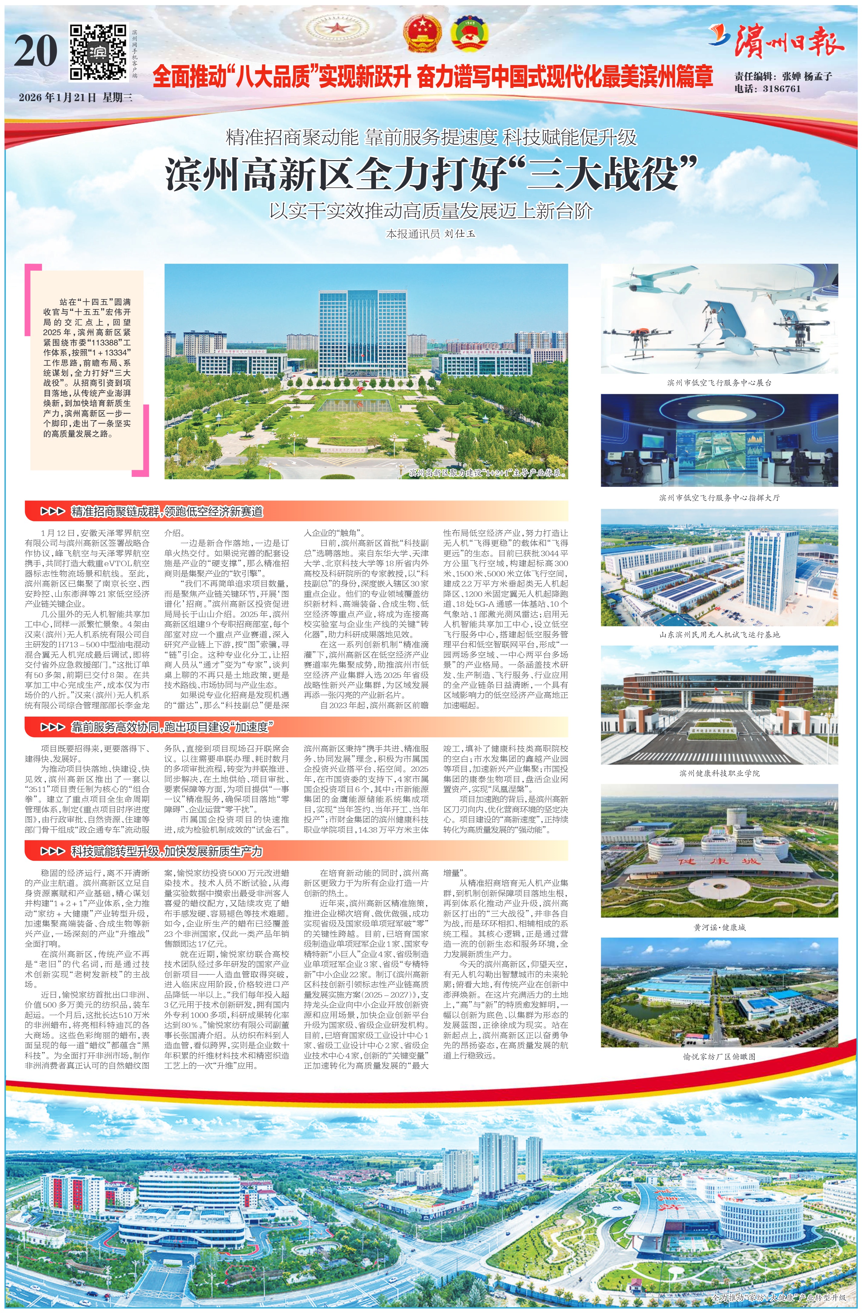 在这一系列创新机制“精准滴灌”下,滨州高新区在低空经济产业赛道率先集聚成势,助推滨州市低空经济产业集群入选2025年省级战略性新兴产业集群,为区域发展再添一张闪亮的产业新名片。