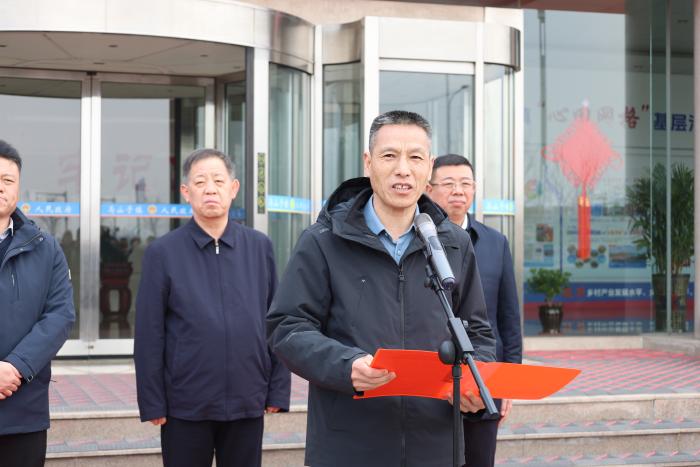 仪式现场,市慈善总会秘书长李洪才同志和区党工委委员、马山子镇党委书记周荣庚同志现场致辞。